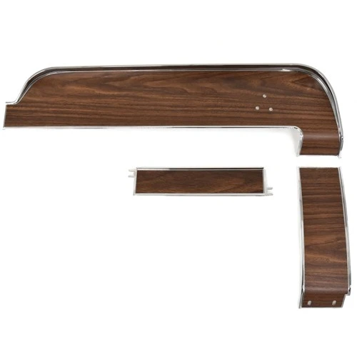 Metal-backed with vinyl woodgrain finish surface; Installs on center and right side portions of the dash.
